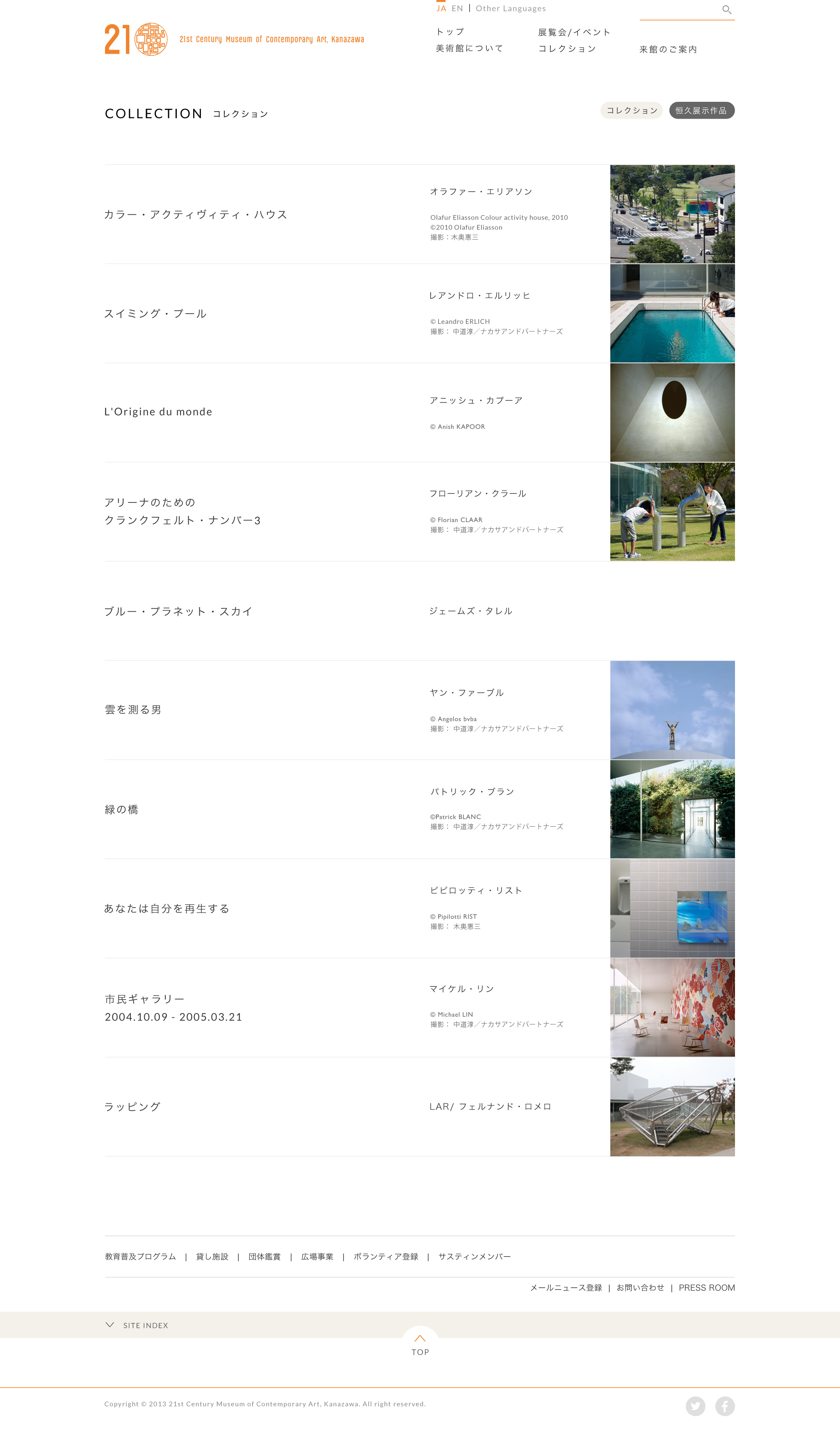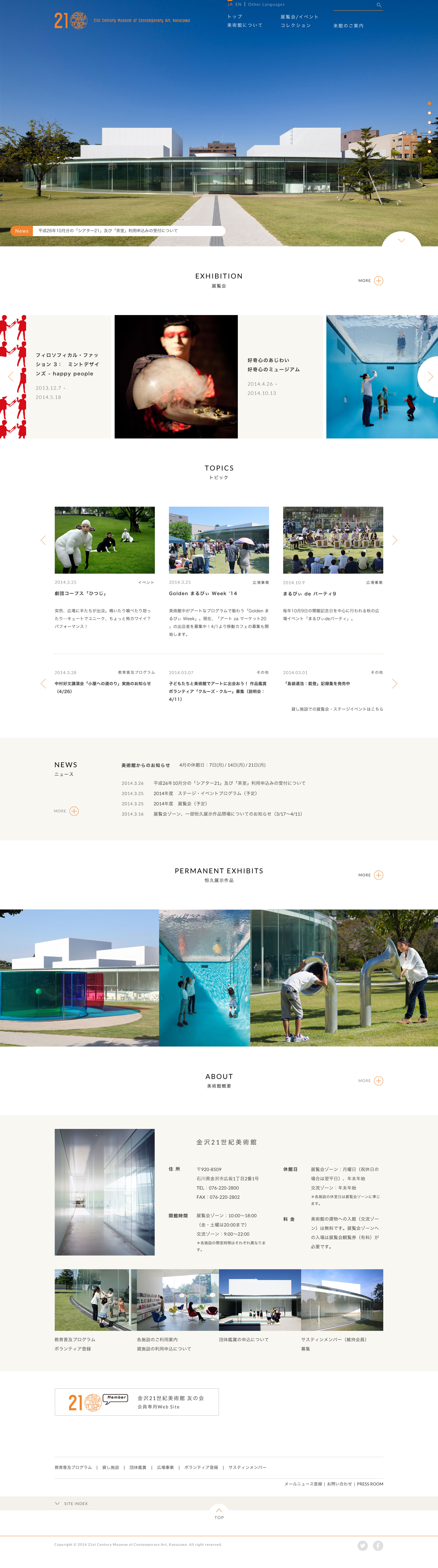 金沢21世紀美術館のサイトリニューアルを担当させていただきました。