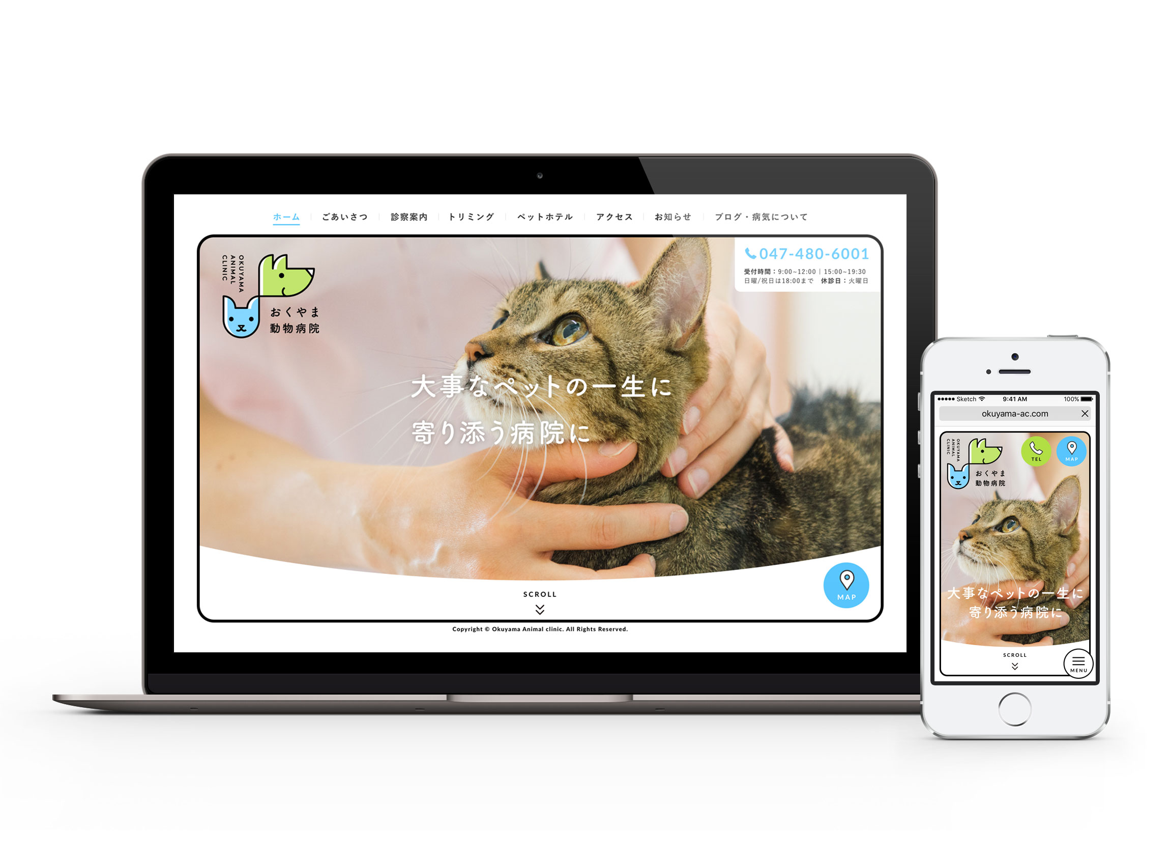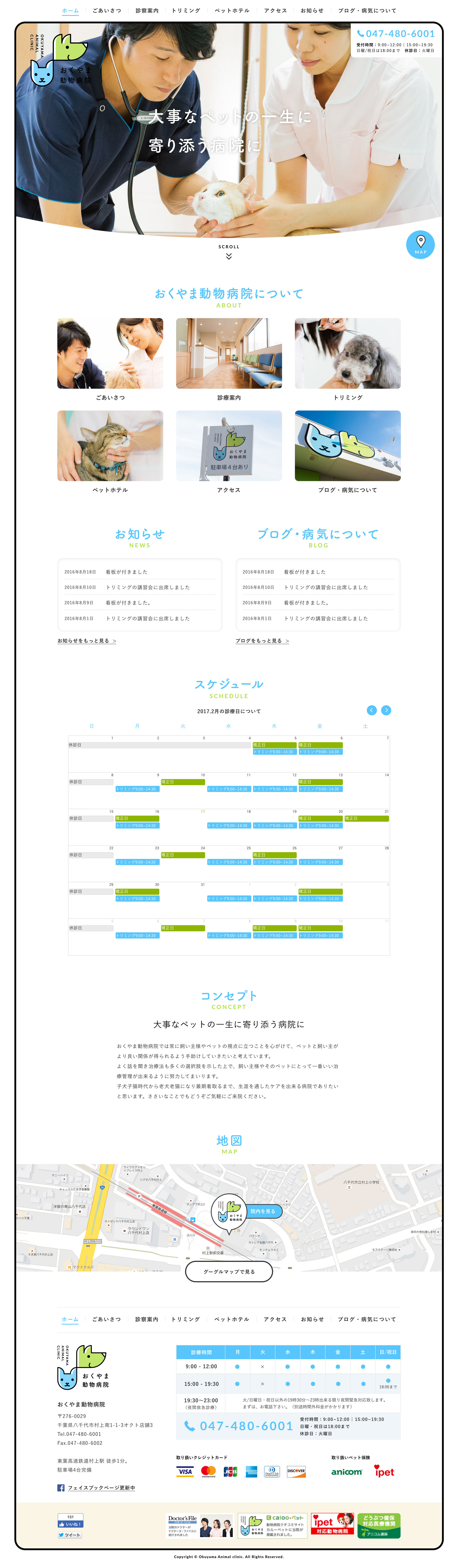 おくやま動物病院のロゴマーク、ウェブサイトのデザイン、写真を撮りました。