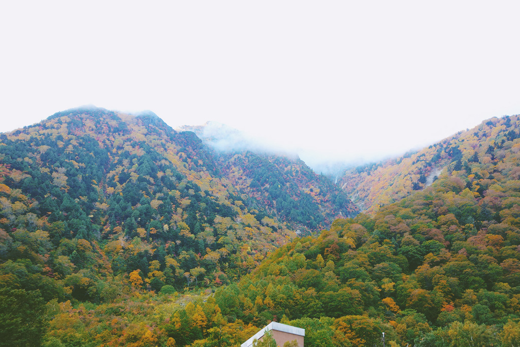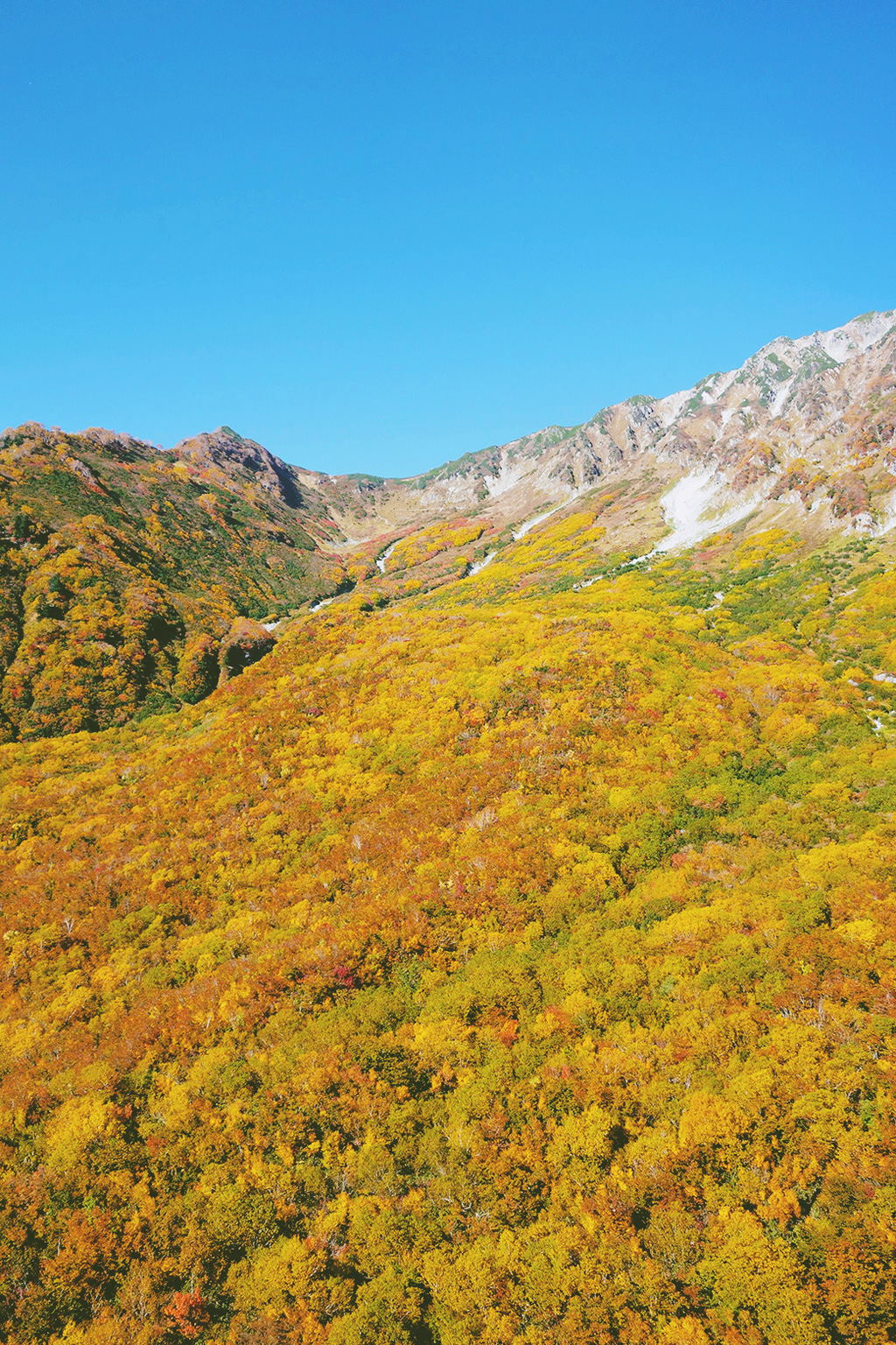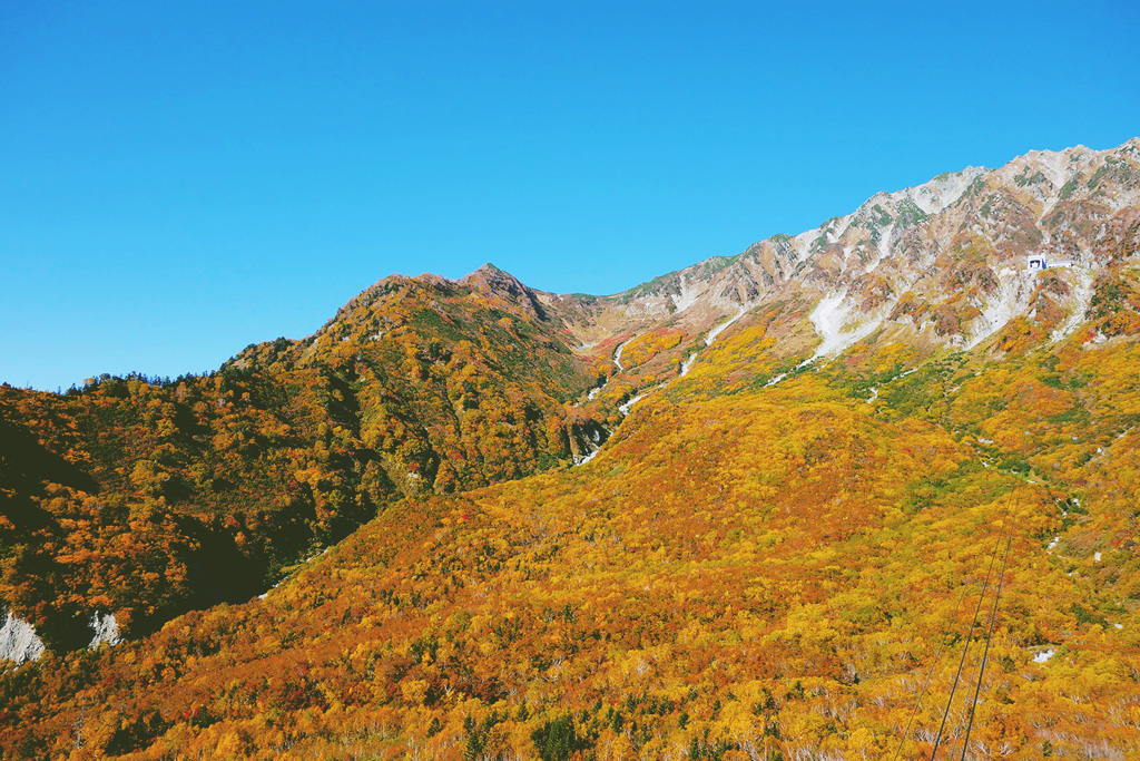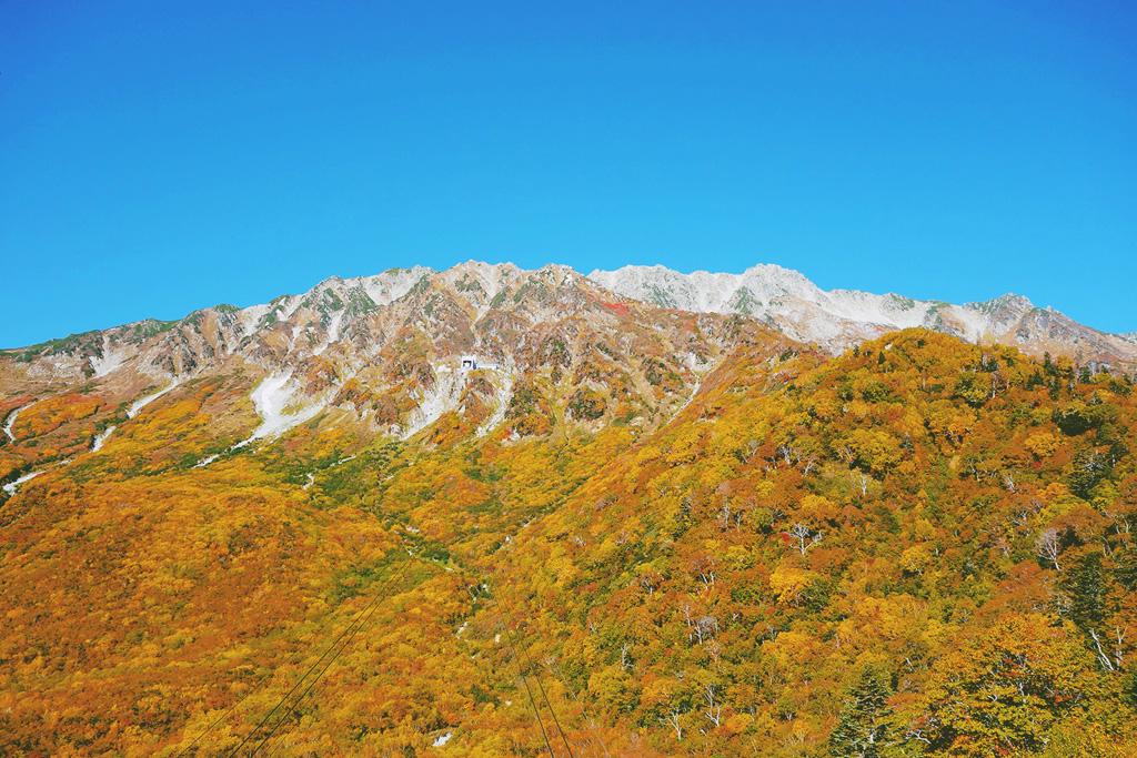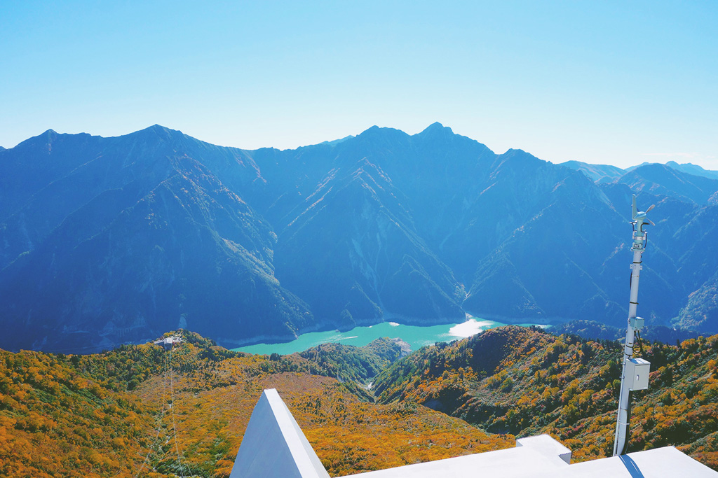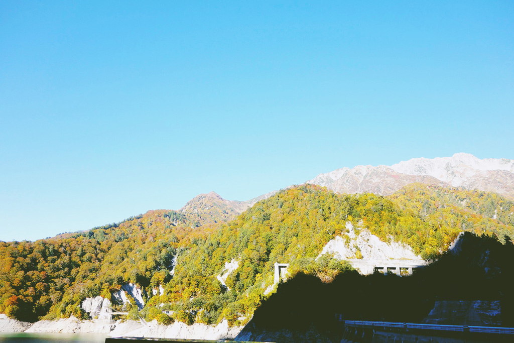 扇沢駅の駐車場から景景色を望む。すでに紅葉は終盤に差し掛かったかのような雰囲気。