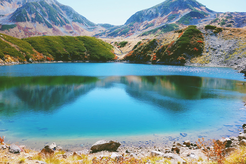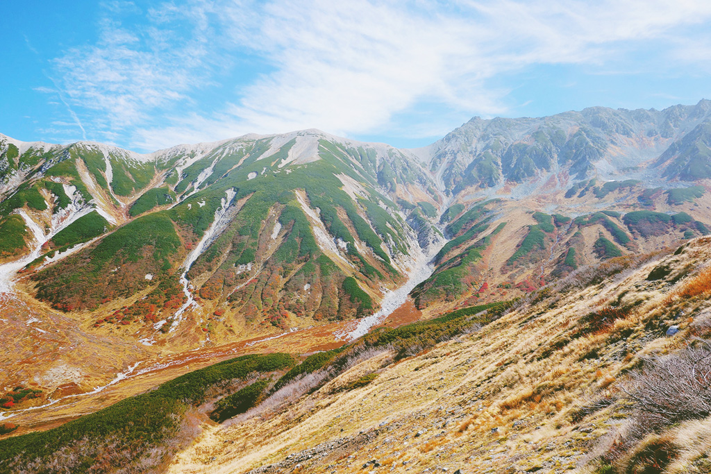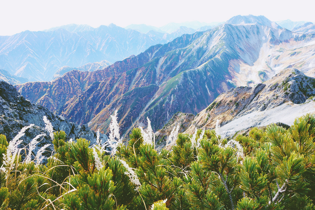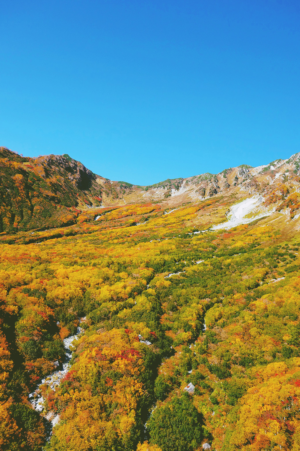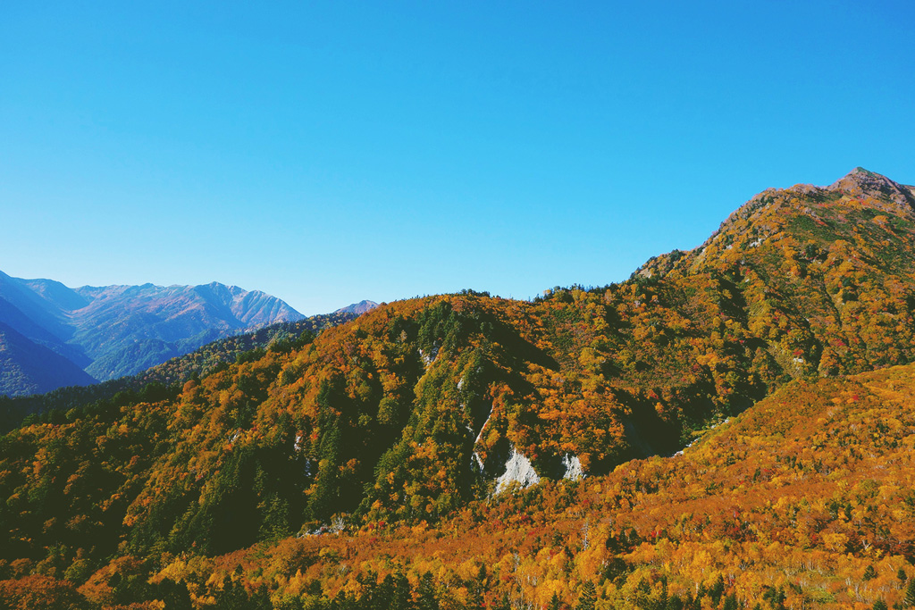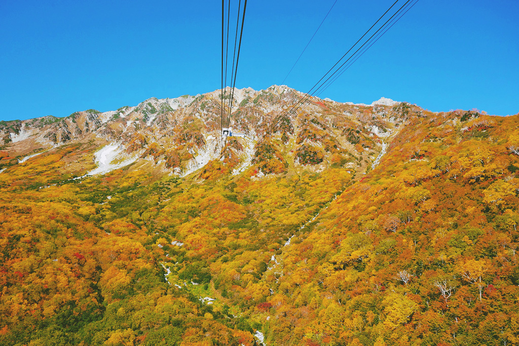 扇沢駅の駐車場から景景色を望む。すでに紅葉は終盤に差し掛かったかのような雰囲気。