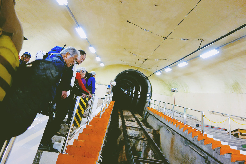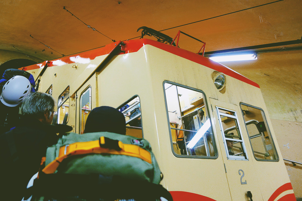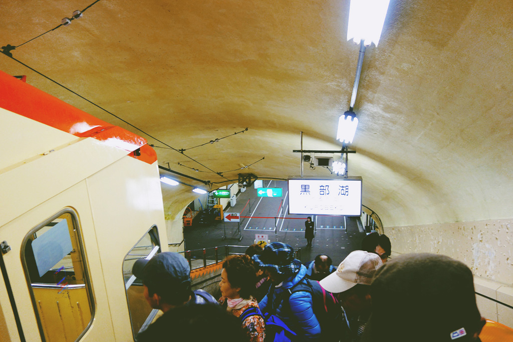 黒部ダムを数百メートル歩き、ケーブルカーに乗り換える。