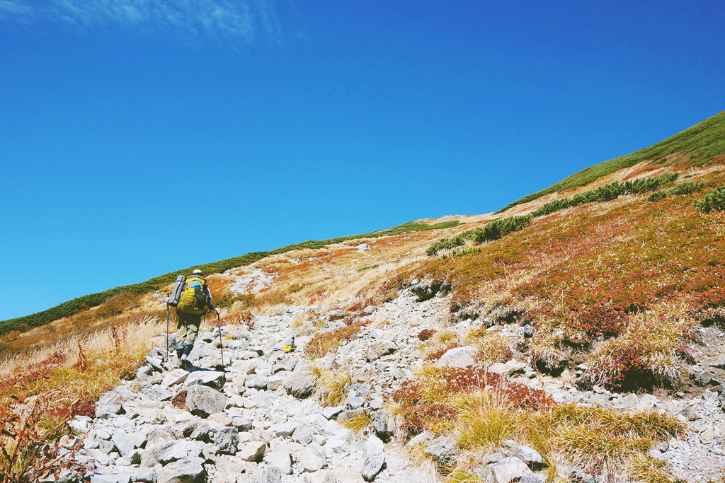 10kg以上の荷物を担いで登るのは本当にしんどい。そして劔御前小屋までの道のりの辛さは尋常じゃなかった。直射日光で水分と体力を持っていかれる。